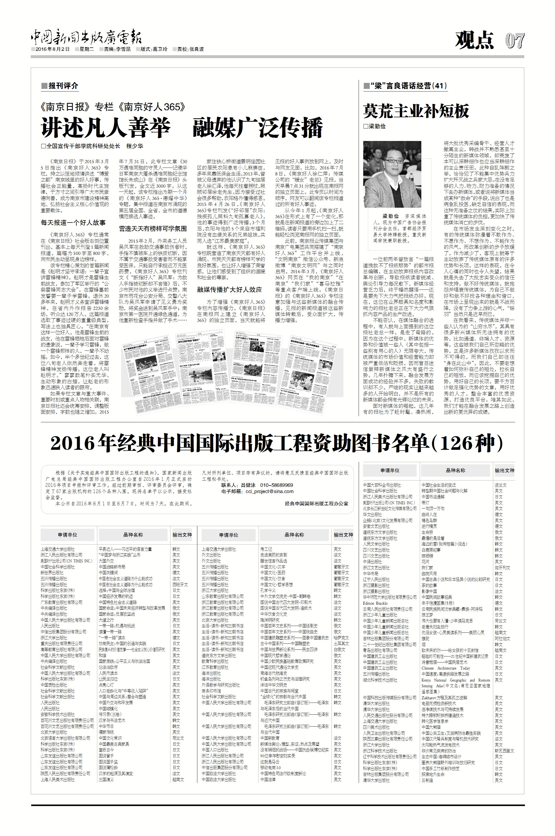 本公示自2016年8月1日至8月7日,时间为7天。在此期间,凡对所列单位、项目存有异议的,请将意见反馈至经典中国国际出版工程秘书处。