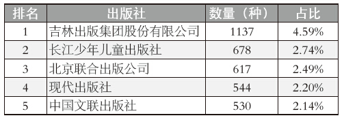 统计数据显示,共有523家出版单位出版文学类图书,占全国出版单位八成之多。在排名前10出版单位中,既有文艺社,也有少儿社和其他类型社。吉林出版集团股份有限公司排名第一,占比远高于其他出版单位,文艺社在出版数量上并不占优势。