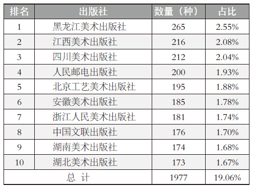 艺术类图书,2016上半年共有476家出版单位出版,占全国出版单位八成。在排名前10的出版单位中,8家是专业出版社,专业美术社优势明显。