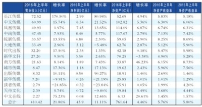 表1 上市书企2016年上半年营业收入、净利润、净资产、净资产收益率及同比
