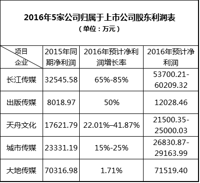 具体来看,5家公司都披露了2015年同期净利润与2016年净利润预期增长率。商务君据此推算出了2016年这5家出版业上市公司的预计净利润。详见下表: