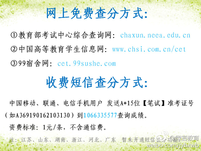 据全国大学英语四、六级考委会办公室发布的通知,2月22日上午9点发布2016年12月全国大学英语四、六级考试及2016年11月全国大学英语四、六级考试口语考试成绩,考生可到教育部考试中心综合查询网(chaxun.neea.edu.cn)、中国高等教育学生信息网(www.chsi.com.cn/cet)、99宿舍网(cet.99sushe.com)查询。小编祝大家取得好成绩!