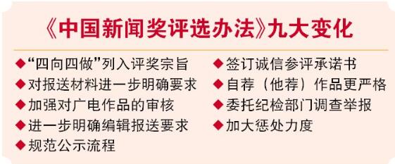 《中国新闻出版广电报》记者注意到,在上述9个方面中,五、六、八都是新增的措施,目的是维护中国新闻奖的良好声誉和权威性,加强评奖工作的各方面监督。