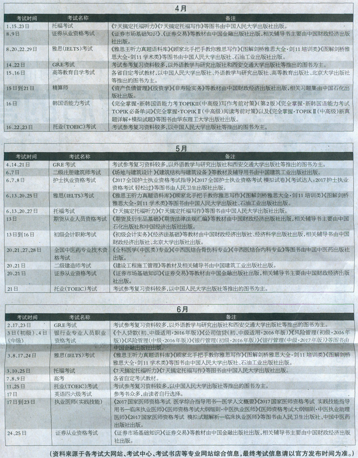 2017年第2季度考试日历 - 招生考试 - 中国高校教材图书网