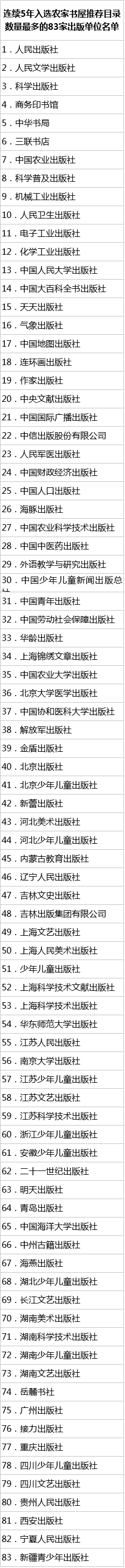 附件1:连续5年入选农家书屋推荐目录数量最多的83家出版单位名单