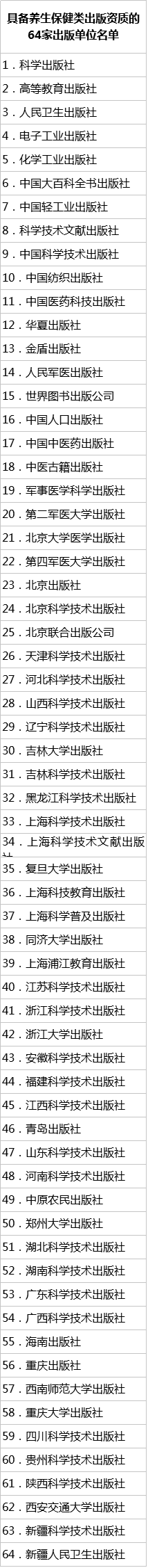附件2:具备养生保健类出版资质的64家出版单位名单