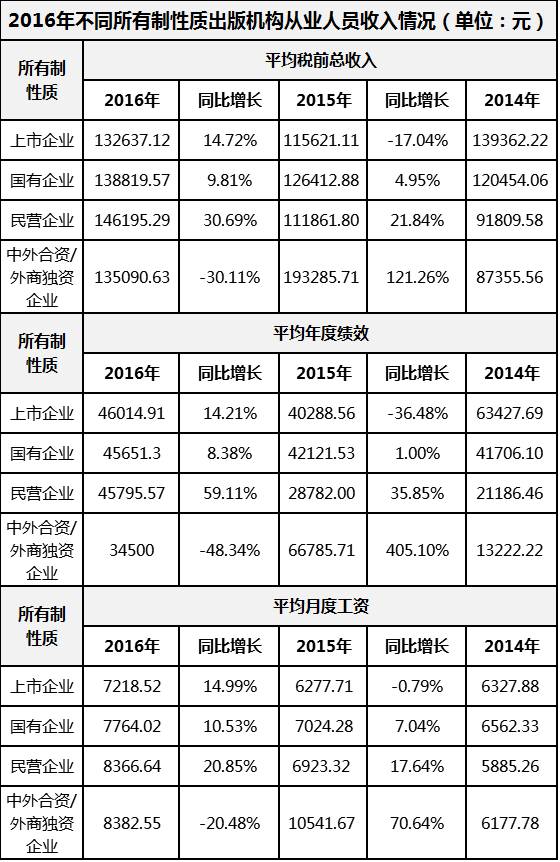 2016年出版从业人员收入情况概述