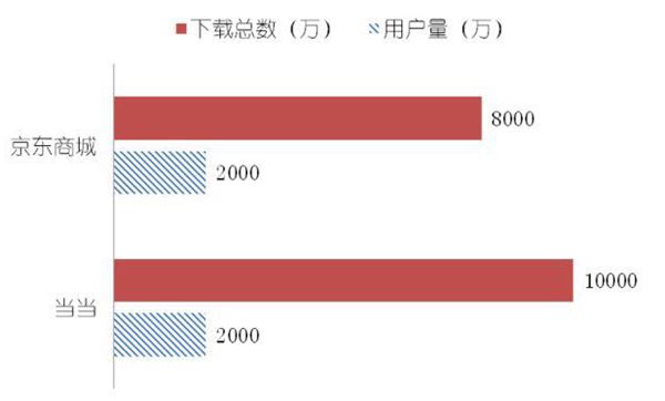 图1:当当、京东商城电子阅读对比图。其中,当当的用户量为2016年4月的数据。