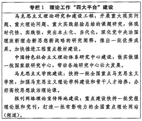 (一)深化中国特色社会主义理论体系的学习研究宣传。把深入学习宣传贯彻习近平总书记系列重要讲话精神和治国理政新理念新思想新战略作为重中之重,深化中国特色社会主义和中国梦的学习宣传教育。继续编辑出版《习近平谈治国理政》、修订出版《习近平总书记系列重要讲话读本》等。结合“学党章党规、学系列讲话,做合格党员”学习教育深化理论宣传。深入实施马克思主义理论研究和建设工程规划纲要。抓好马克思主义哲学和党史国史、社会主义发展史的学习研究。发展中国特色社会主义政治经济学。坚持和创新党内学习制度,制定党委(党组)中心组学习规则。组织开展面向基层群众的对象化、互动化的理论宣讲。加强对各种社会思潮的辨析和引导,出版一批通俗理论读物。深入实施高校思想政治理论课建设体系创新计划。加强青少年理想信念教育。