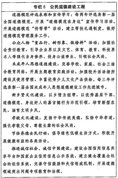 (三)深入推进公民道德建设。加强社会公德、职业道德、家庭美德、个人品德教育。发挥党员干部的模范带头作用。举办中国公民道德论坛。礼敬英雄人物,加强对全国重大典型和道德模范、时代楷模的学习宣传,广泛推出“最美人物”、善行义举和身边好人。建立健全先进模范发挥作用的长效机制。弘扬中华传统美德,创新发展乡贤文化,开展孝敬教育、勤劳节俭教育、文明礼仪教育。加强社会诚信建设,推进诚信建设制度化。弘扬劳动最光荣、劳动者最伟大的观念,加强企业文化建设,培育创新创业精神。