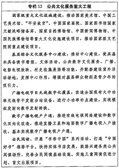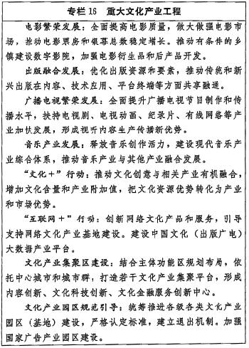 《国家“十三五”时期文化发展改革规划纲要》主要内容如下。