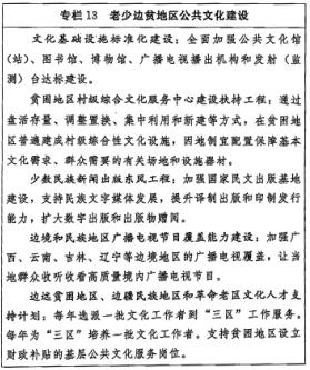 (四)推动老少边贫地区公共文化跨越发展。与国家脱贫攻坚战略相结合,实施一批公共文化设施建设项目。加强少数民族语言频率频道和涉农节目建设。为贫困地区配备或更新多功能流动文化服务车。支持少数民族电影事业发展。加大文化扶贫力度,建立健全“结对子、种文化”工作机制。