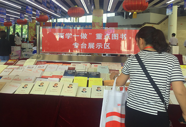 “两学一做”重点图书专台展示区位于展场一层中厅显要位置,这里集中展示了学习出版社《全面从严治党面对面--理论热点面对面•2017》、人民日报出版社《四个合格党员干部读本--推进两学一做学习教育常态化制度化》、党建读物出版社《关于推进两学一做学习教育常态化制度化的意见》等“两学一做”重点图书200余种。