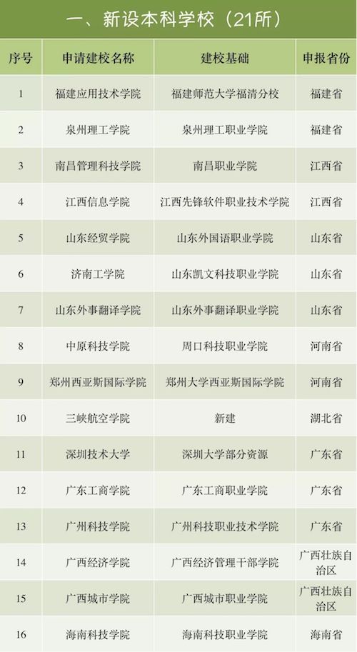 不过,这只是列入专家考察的高校名单,最终结果还需要全国高等学校设置评议委员会的最终评议。