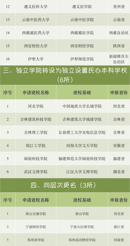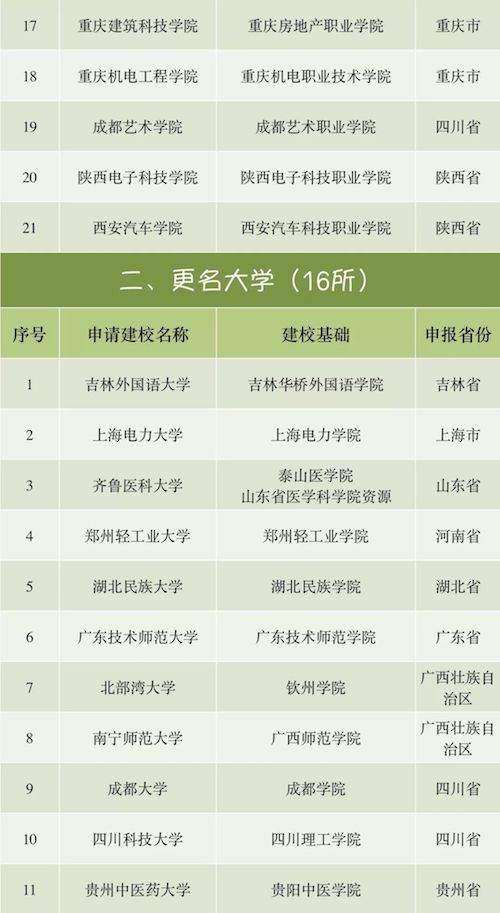 从2017年下半年开始,全国各地教育主管部门先后公示申报升格、更名和转设的高校名单,共有数十所高校位列其中,新一轮高校更名大幕正式拉开。