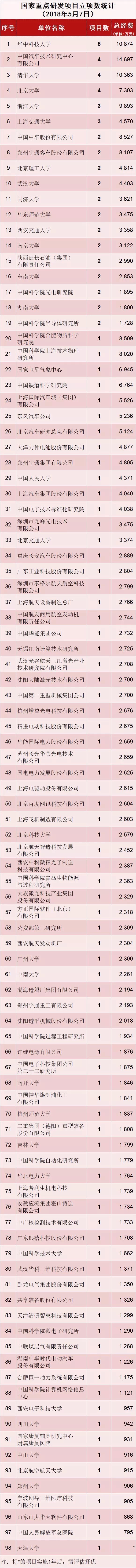 刚刚,科学技术部又公示了8个国家重点研发计划重点专项拟立项的2018年度项目公示清单,分别是“高性能计算”重点专项、“云计算和大数据”重点专项、“地球观测与导航”重点专项、“战略性先进电子材料”重点专项、“增材制造与激光制造”重点专项、“煤炭清洁高效利用和新型节能技术”重点专项、“新能源汽车”重点专项和“先进轨道交通”重点专项。