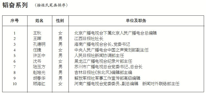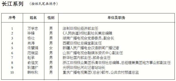 第十五届长江韬奋奖拟获奖者名单