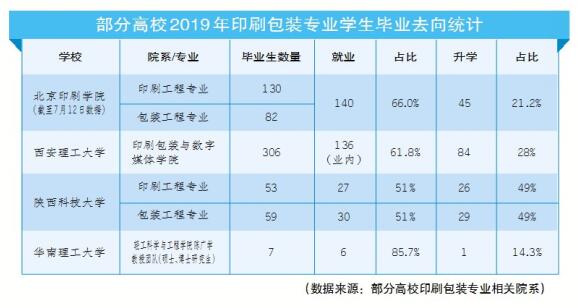 记者采访了多所高校相关负责人,获得的就业数据显示,各高校印刷包装相关专业毕业生就业情况与去年大体相当,超过一半的毕业生选择在行业内就业。