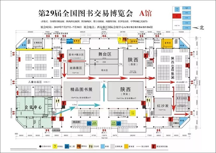 A馆设开幕式活动区、全国图书精品展、陕西(西安)展团、图书IP展区、数字出版展、丝路图书展、红沙发访谈、中华印刷之光展等项目。