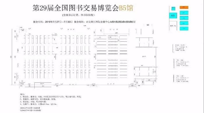 主会场设在西安曲江国际会展中心,使用A、B1、B2、B3、B4、B5、B6七个展馆。同时在延安市和铜川市设立分会场。本届书博会展览面积近66000平方米,创历届场馆面积之最。目前共有1200余家单位确定参展,较上届增加近50%,预订展位3240多个,较上届增加39%。已确定参展出版社400余家,出版物品种12万种。