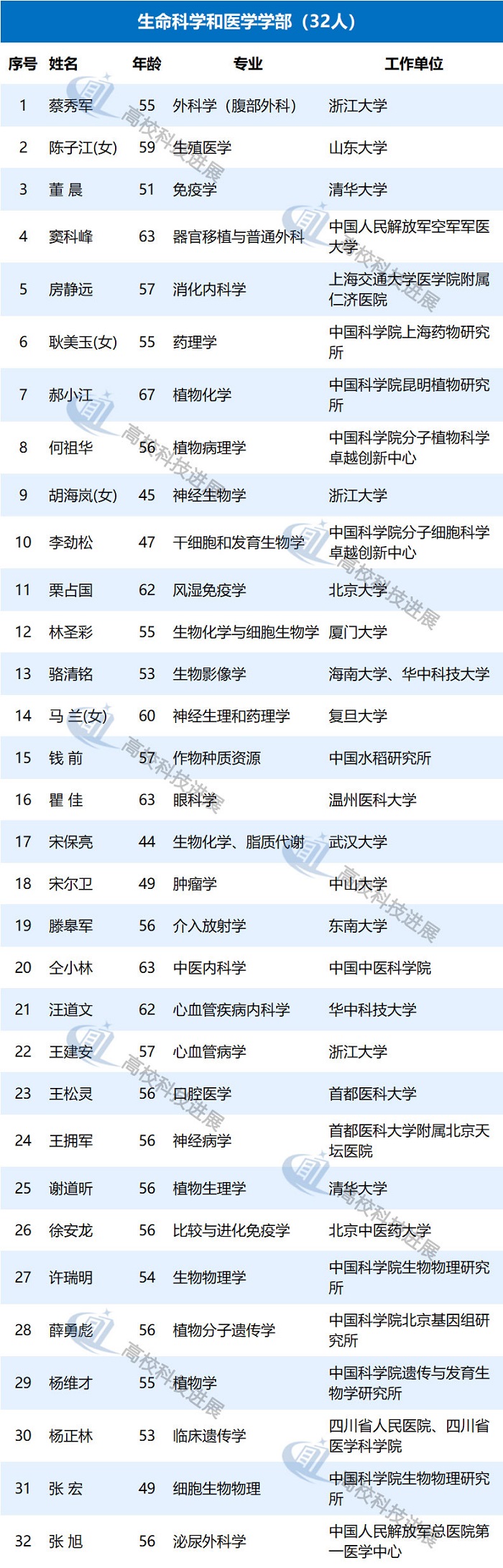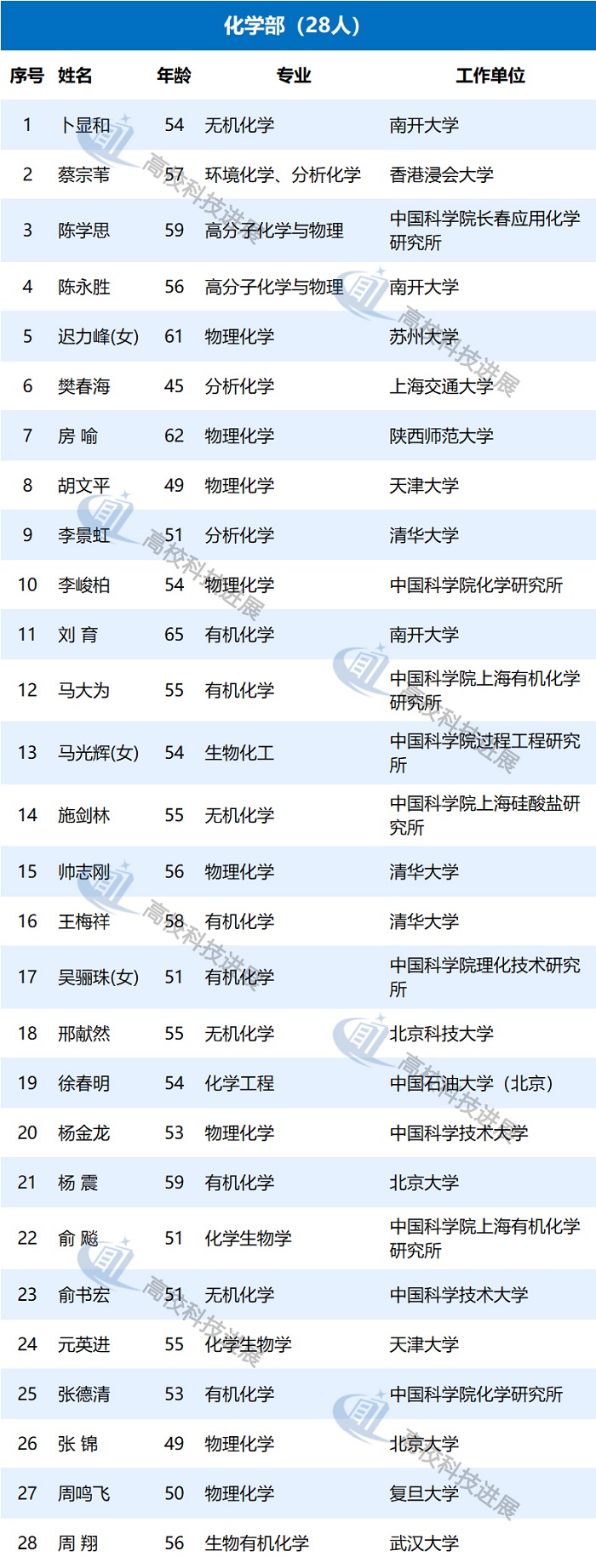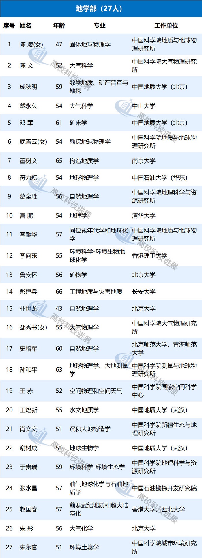 此外,据中国教育网统计发现,在来自高校的初步候选人中,年龄最大的为68岁,50岁以下的有9位,年龄最小的为43岁,是北京大学朴世龙教授。