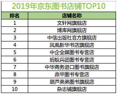 根据京东大数据,在2019年最受欢迎京东图书店铺TOP10中,有老字号的新华书店、行业出版社和优质经销商。位列前两位的文轩网旗舰店和博库网旗舰店都是属于多流量渠道的品牌。