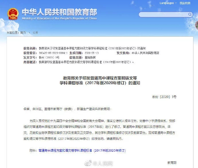 近日,教育部对外公布普通高中课程方案和语文等学科课程标准(2017年版2020年修订),方案显示,今后,普通高中应在原来科目基础上开设劳动课程,共6个学分,为必修学分。其中志愿服务2学分,在课外时间进行,三年不少于40小时;其余4学分内容与通用技术的选择性必修内容以及校本课程内容统筹。