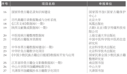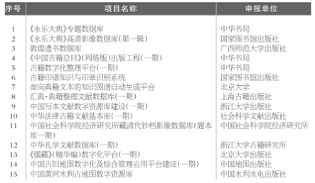 11月15日,按照国家古籍数字化工程专项经费资助项目管理工作的要求,全国古籍整理出版规划领导小组办公室将2021年度国家古籍数字化工程专项经费拟资助项目名单予以公示,接受社会监督。公示时间为11月15日至21日。