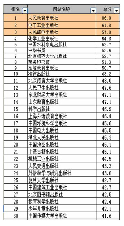 全国出版社网站排名揭晓 人民教育出版社列首位 - 业界观察 - 中国高校教材图书网