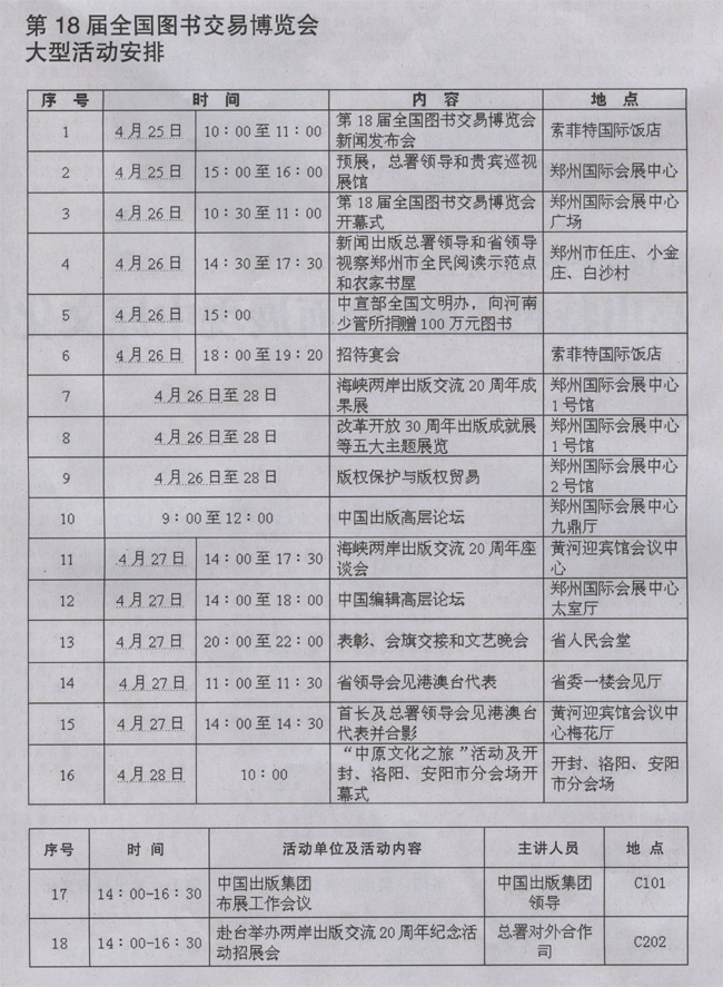 第18届全国图书交易博览会大型活动安排