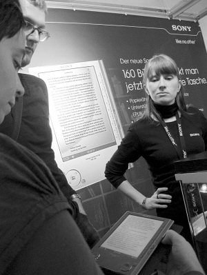 在今年法兰克福书展上,索尼电子书阅读器引发关注。本报记者 冯威 摄