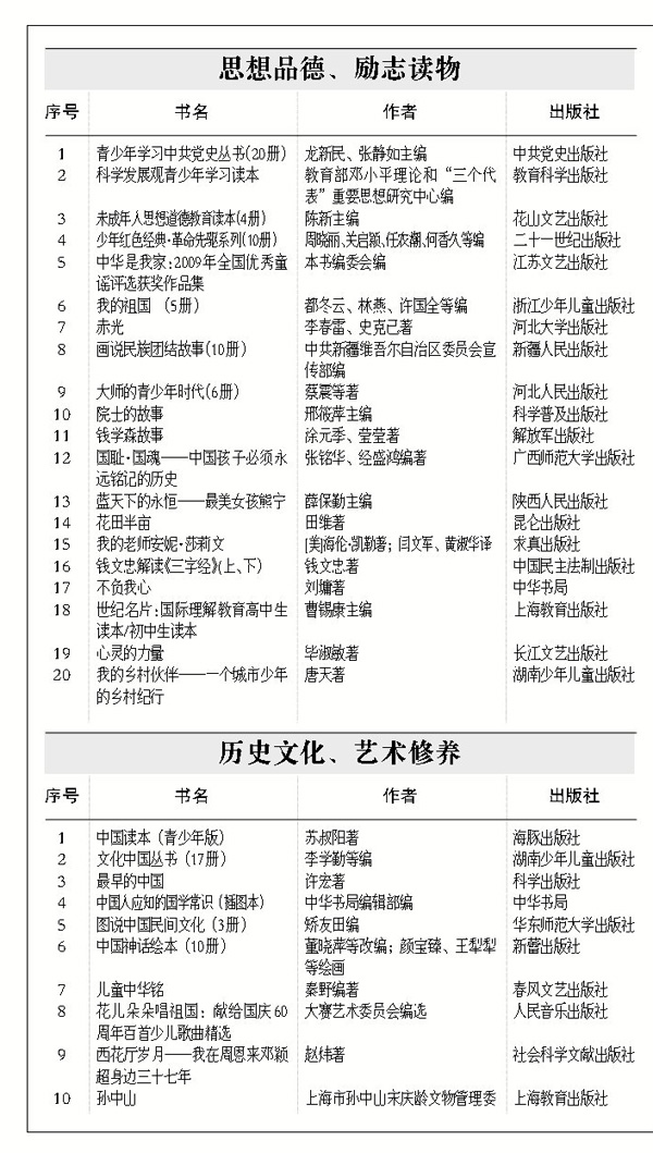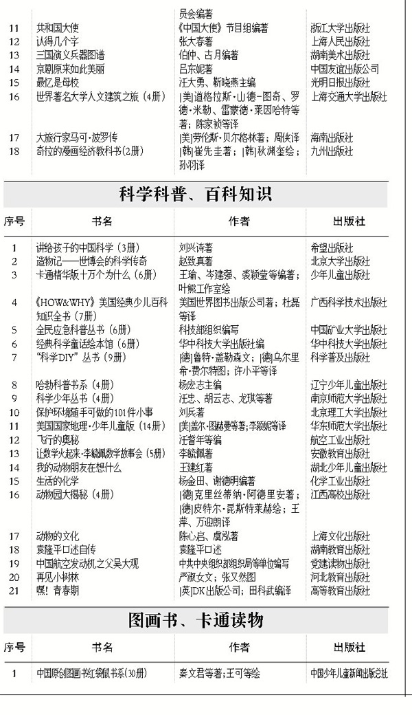 2011年新闻出版总署向全国青少年推荐百种优秀图书入选书目 - 出版新闻 - 中国高校教材图书网