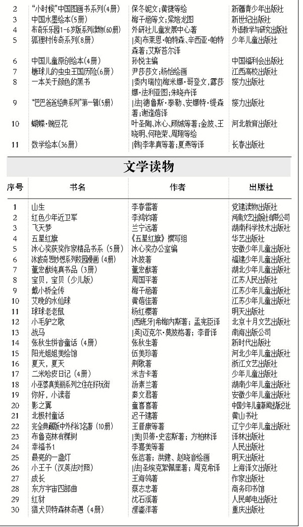 2011年新闻出版总署向全国青少年推荐百种优秀图书入选书目