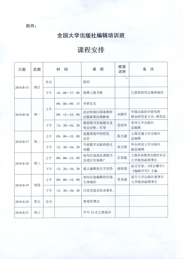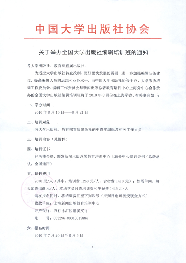 关于举办全国大学出版社编辑培训班的通知 - 信息公告 - 中国高校教材图书网