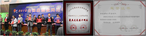 西南财经大学出版社网站荣获“2010最具发展潜力网站” - 出版动态 - 中国高校教材图书网