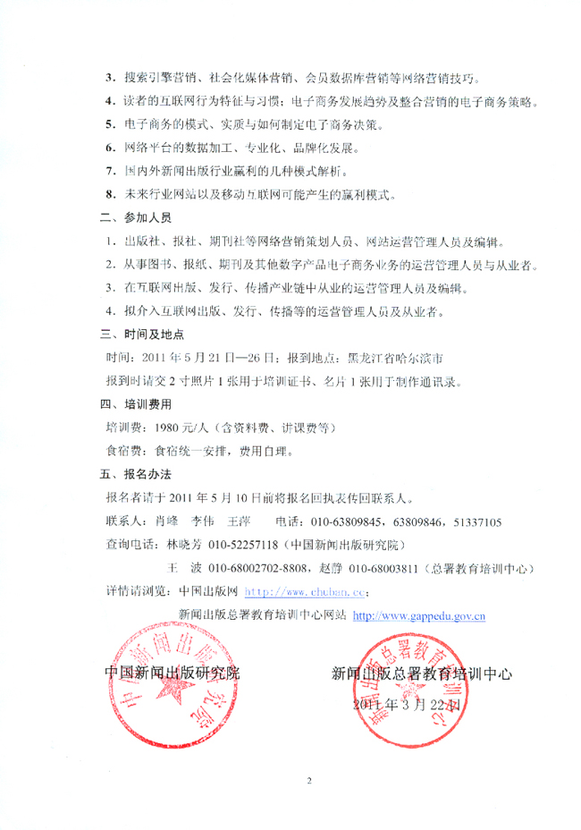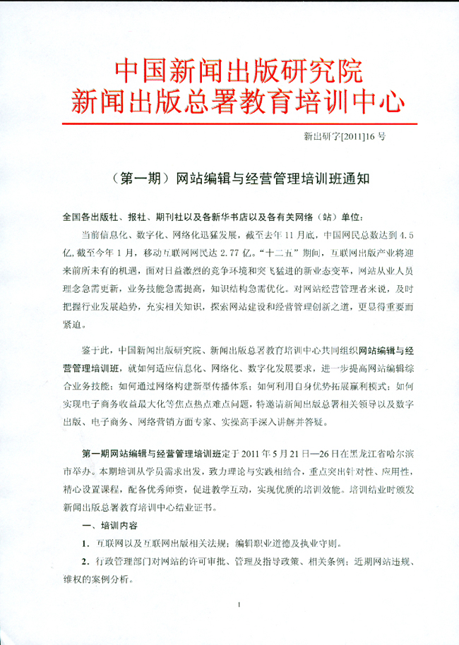 中国新闻出版研究院、总署教育培训中心 (第一期)网站编辑与经营管理培训班通知