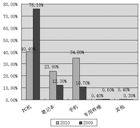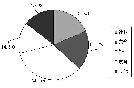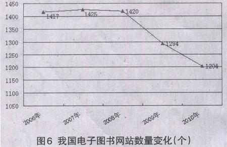 图6:我国电子图书网站数量变化(个) 按网站性质划分,国内的电子书网站仍旧以转载为主体,原创类网站虽然数量较少,但是其数量(2006年61家、2010年57家)未有较明显的波动;相比之下,转载类网站从2006年的1356个减少到2010年的1147个。按内容类别划分,仍然以休闲类网站为主,教育类网站数量降幅明显。(见表4) 表4:按内容类别划分的网站百分比