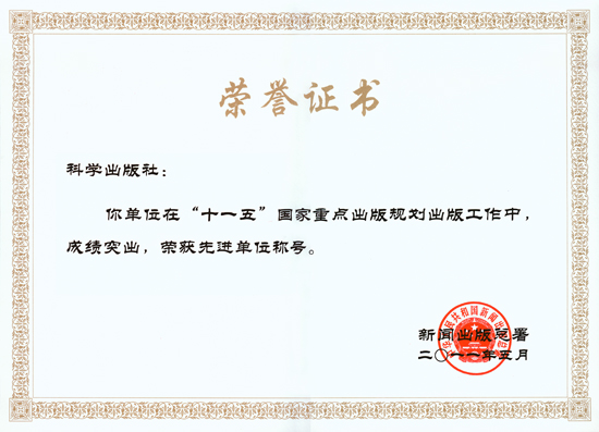 科学出版社“十一五”国家重点出版规划工作受新闻出版总署表彰 - 出版动态 - 中国高校教材图书网