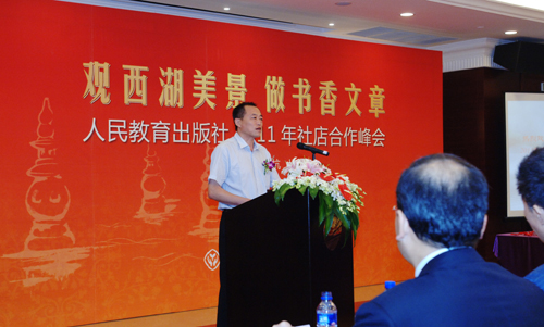 2011年9月8日,人民教育出版社在杭州召开2011年社店合作峰会。会议以“观西湖美景,做书香文章”为主题,探讨在新闻出版体制改革的大潮中,在教育改革不断深入开展的新形势、新要求的环境下,社店如何以产品和服务为纽带,开展深层次的交流合作。50多位来自全国各省级出版集团和新华书店的董事长、总经理、副总经理和负责人出席了会议。