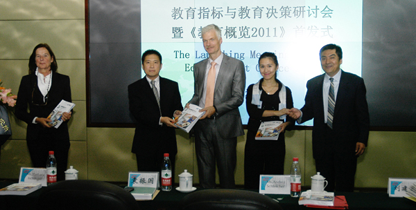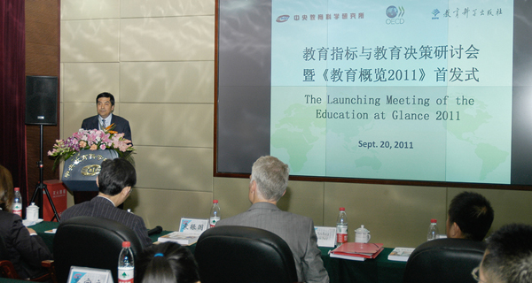 9月20日,教育科学出版社出版的《教育概览2011:OECD指标》中文版首发式在中央教育科学研究所举行,这是《教育概览》系列中文版首次与英文版、法文版同步出版。中央教育科学研究所所长袁振国在会上致辞,经济合作与发展组织(OECD)教育署署长芭芭拉•伊辛格尔女士就《教育概览2011》的主要研究发现作了说明,OECD秘书长特别顾问、教育署指标与数据处主任安德里亚先生作了题为“OECD教育指标体系与世界各国教育体系比较”的学术报告。所广一社长在会上发言,充分肯定了《教育概览2011:OECD指标》中文版出版的意义,感谢各方为中文版的同步出版所付出的努力,并希望以后能够借助中央教科所与经合组织深入合作的新平台,出版更多经合组织优秀出版物。葛都副总编辑以及学术著作编辑部、总编室、电子音像社的相关人员参加了首发式。