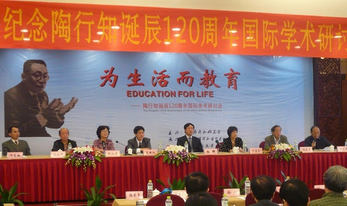 由中国陶行知研究会主办、杭州师范大学承办的“纪念陶行知诞辰120周年国际学术研讨会” 于11月28—30日在杭州隆重召开。来自美国、日本、韩国、马来西亚、新加坡、菲律宾和中国香港、台湾等地以及北京、上海、安徽、浙江等十几个省市地的陶研专家学者150多人出席了研讨会。 教育科学出版社综合编辑部祖晶、李正堂同志参加了会议。会上,祖晶主任受社长委托祝贺会议的召开,介绍了教育科学出版社的发展状况、学术影响以及在陶行知著作出版方面所做的工作,并向中国陶行知研究会赠送了该社新近出版的《陶行知选集》(三卷本)。