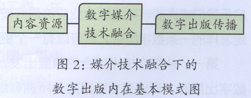 而依据媒介技术融合的理念,除图中的数字交易部分作为数字出版的盈利模式是数字出版企业必须和共同拥有的模式外,数字出版本身的流程完全可以被看做是媒介技术融合后的结果,因此,数字出版的内在基本模式可以简化为下图: