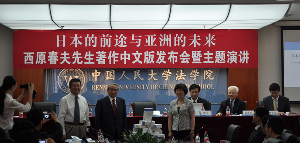 5月28日,在中国人民大学法学院明德法学楼601报告厅隆重举行日本著名刑法学家、原早稻田大学校长西原春夫先生著作《日本的前途与亚洲的未来》新书发布会。会议由中国人民大学法学院和中国人民大学刑事法律科学研究中心共同主办,中国人民大学出版社协办。中国人民大学刑事法律科学研究中心执行主任、法学院副院长刘明祥教授担任主持人。出席本次会议的主要有:早稻田大学名誉教授、原校长西原春夫先生,中国人民大学冯惠玲副校长,中国人民大学出版社贺耀敏社长,中国人民大学法学院院长韩大元教授,中国人民大学名誉一级教授高铭暄先生,北京大学法学院梁根林教授,法学院副院长王轶教授,法学院杨建顺教授、杨东副教授、丁相顺副教授、付立庆副教授、陈璇老师,中国人民大学法学院图书馆日本分馆馆长本乡三好先生,中国人民大学出版社法律分社陈松涛社长、方明编辑,本书翻译人宋建军先生以及中国人民大学法学院的众多博士生、硕士生。