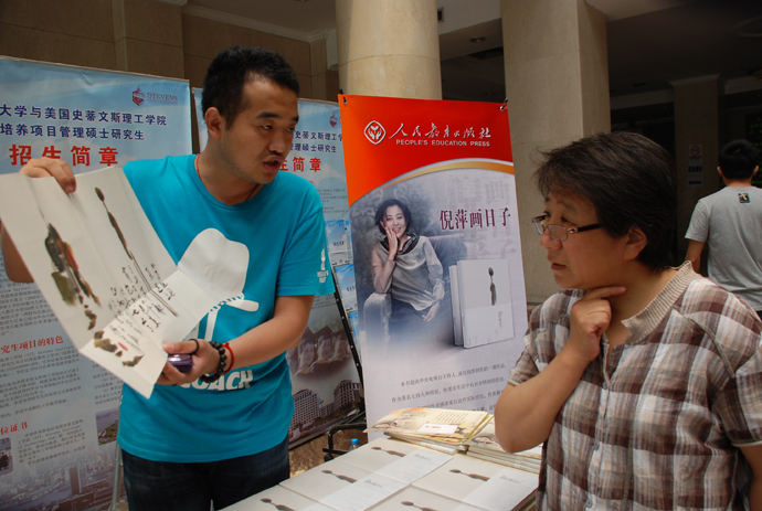 本网讯:2012年6月13日,人民教育出版社向中央财经大学教师馈赠巡展样书暨《倪萍画日子》新书推介活动在中央财经大学举行。 2008年起,由中国大学出版社协会代办站工作委员会、高等学校出版社图书代办站服务中心主办的教材巡展活动已经持续了5年。中国人民大学出版社高校图书代办站、首都师范大学出版社高校图书代办站、北京世纪之光高校图书代办站、北京理工高校图书代办站具体承办北京地区巡展活动。中央财经大学连续3年协助开展了巡展专场活动,在场地协调、前期动员等方面做了大量卓有成效的工作。本次人民教育出版社向中央财经大学教师馈赠巡展样书专场活动意在回馈、感谢中央财经大学在高校教材巡展活动中所提供的帮助与支持。 在赠送巡展样书活动现场,部分老师得到了在此前教材巡展活动中预定的样书。到访师生络绎不绝,各种关于教育类、心理类的图书倍受青睐。有的教师在展台前仔细比对,寻找合适的教材;有的教师向工作人员了解教材的详细情况,工作人员一边耐心的进行解答,一边把老师们的需求记录下来。中央财经大学苗月新老师说,现在老师购买图书的方式主要有三种,第一种是去大型的书店购书;第二种是去网上书店购买;还有一种就是现场购买。他认为图书的现场展销更加直观、方便,本次回馈样书活动形式新颖、独特,很有意义。 人民教育出版社还带来了最新图书——《倪萍画日子》,以飨宴广大师生。作为著名主持人和明星,作者倪萍在生活中有许多特别的经历,其文章和画作的创作灵感多来自这些实际经历,是作者以极富生活气息的视角对身处世界的表达和感悟。该书吸引了众多师生驻足,许多人挤在展位前,场面火爆,不一会儿,小山一样的新书便被抢购一空。 一边是温馨的赠书活动,一边是火爆的购书现场。此次活动受到了广大师生的热烈欢迎,他们希望人民教育出版社可以带来更多更好的新书。人民教育出版社的现场工作人员也表示会听取大家的建议,认真做好高校教材服务工作,以满足广大师生对于教材及畅销书的需求。