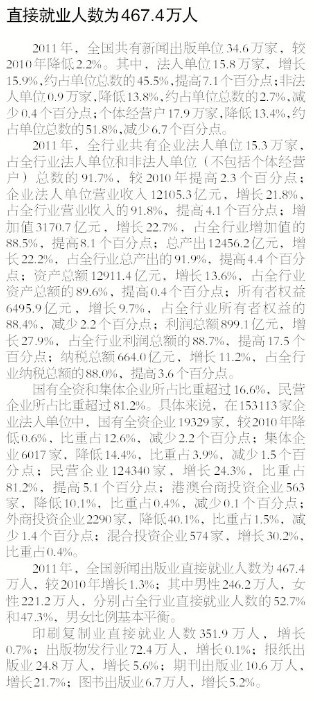 2011年新闻出版产业分析报告:新闻出版产业快速稳步增长(下)
