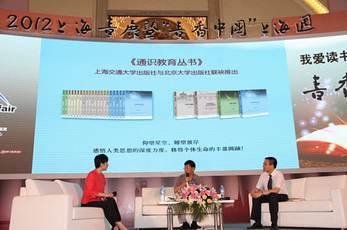 8月15日上午,上海交通大学出版社与北京大学出版社在上海书展中央大厅联袂举办了题为“教养与文明——谈通识教育的无用之用”的对谈活动。这是2012上海书展的首场论坛,题目叫“教养与文明——谈通识教育的无用之用”。
