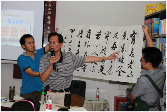 西南财经大学出版社特邀我国著名书法教育家宋太平老师携最新力作《书法起步》与“粉丝”见面,于8月25日15点在成都光华财经书城光华店书吧举办了新书签售暨书法知识讲座活动。