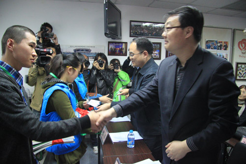 4月21日,“青春梦想同龄同行”志愿服务项目培训班开学典礼在北京正式举行。共青团北京市委副书记熊卓、人民教育出版社党委书记郭戈、北京市志愿服务指导中心主任郭新保,十八大代表、北京致诚律师事务所主任、北京青春梦想同龄同行志愿者协会会长佟丽华、人民教育出版社英语编辑室主任吴欣等出席活动。青春梦想同龄同行项目学员代表、志愿者代表、媒体记者60余人参加了活动。