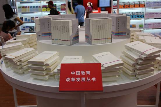 中国教育出版传媒集团展位中重点陈列的“中国教育改革发展丛书”