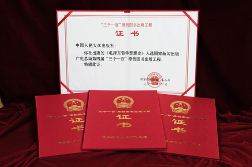 近日,第四届“三个一百”原创图书出版工程评选揭晓,人大社4种图书入选人文社科类,其中 “国家哲学社会科学成果文库”中吴易风、白暴力主编的《马克思经济学数学模型研究》和郭庆旺、贾俊雪著的《中国地方政府规模和结构优化研究》,庄福龄、杨瑞森、余品华主编的 《毛泽东哲学思想史》,以及冯惠玲、刘越男等著的《电子文件管理国家战略》。 国家新闻出版广电总局自今年3月启动第四届“三个一百”原创图书出版工程评选工作以来,得到出版界和学术界的广泛支持和参与。全国出版单位共推荐各类原创图书1669种。本届评选由国家新闻出版广电总局组织各学科专家,共评出原创图书261种,其中人文社科类84种,科学技术类86种,文艺少儿类91种。